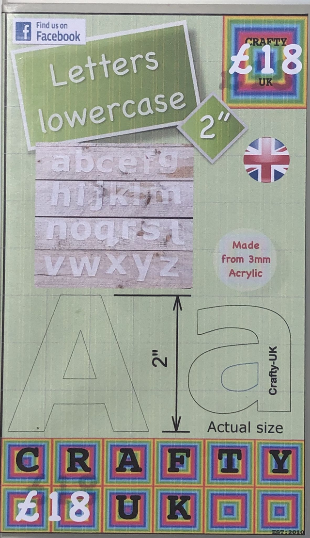 Packs Contain Acrylic stencils of the Alphabet 2" high Complete uppers case set with Numbers 0 to 9 £ & and a 2" Heart.
