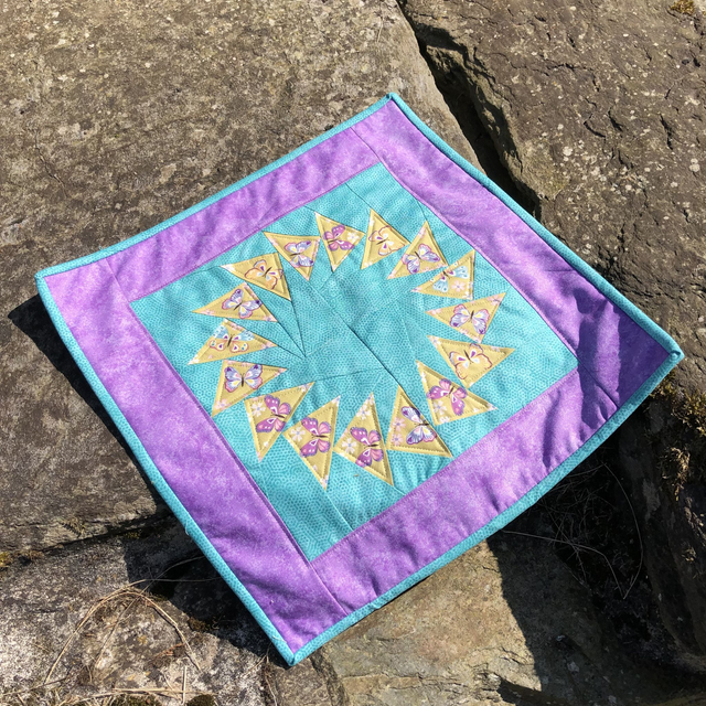 FPP Kits East kit contained 4 papers which when joined together makes the block of flying geese going round In the kit there is a triangle acrylic template to let you fuzzy cut the Butterfly fabric