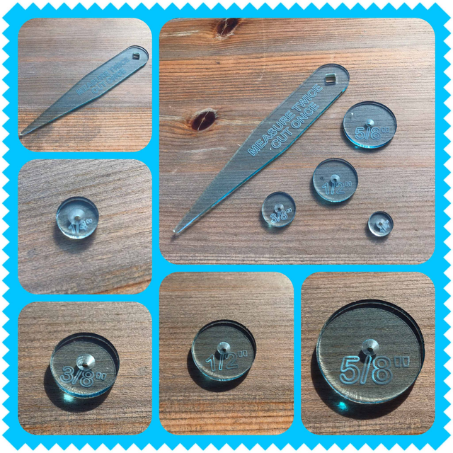 Pack contains 4 Widgets ¼" ⅜" ½" and a ⅝" plus a pointer to help turn fabric corners. Note the pointers will have different text on them.